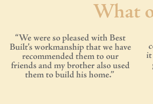 A Tradition of Excellence Choosing the right building contractor will be the most important decision you make about your building project. Whether small or large, your building project will be a success when you choose the professionals at Best Built.